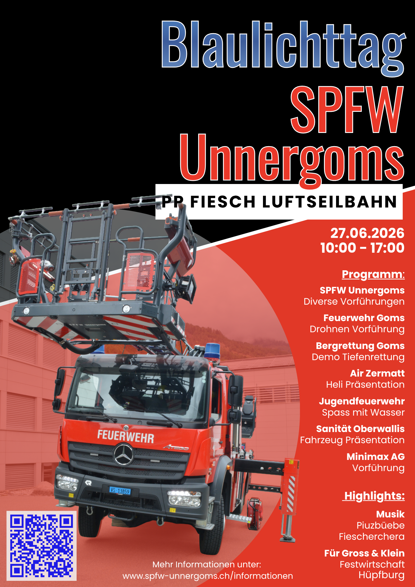 | 27. Juni 2026 | Blaulichttag - SPFW Unnergoms SPFW Unnergoms | Parkplatz Luftseilbahn FieschParkplatz Luftseilbahn Fiesch | |||||||||||||||||||||||||||||||||||||||