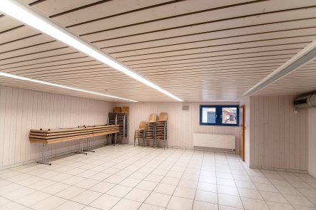 - Die Turnhalle hat Standardgrösse für Sport und Spiel und ist ebenfalls für Vereins-Anlässe, private und öffentliche Anlässe geeignet. Die Turnhalle wird zusammen mit dem Foyer vermietet.